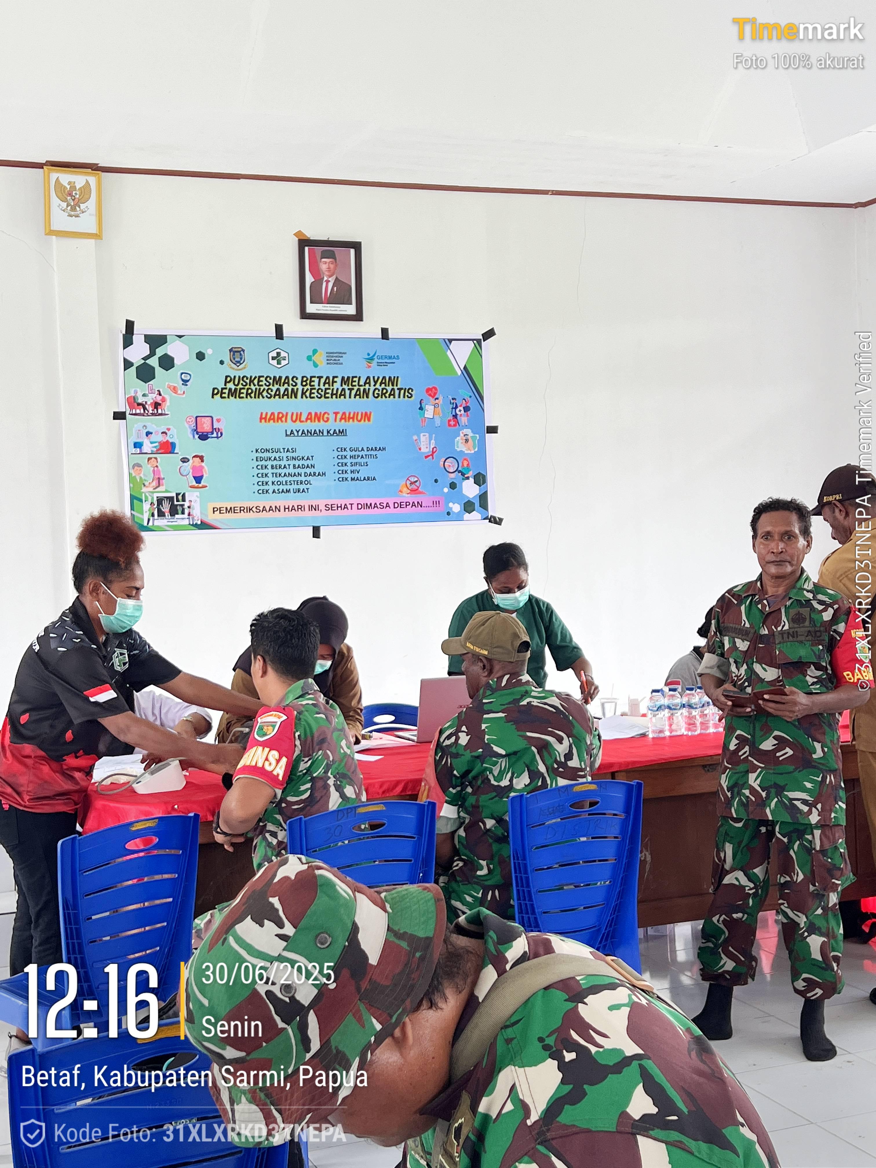 Pantai Timur, 08 Juli 2025 — Dalam upaya meningkatkan kesadaran masyarakat terhadap pentingnya pemeriksaan kesehatan secara dini, Puskesmas Betaf menyelenggarakan kegiatan Cek Kesehatan Gratis (CKG) yang ditujukan kepada seluruh pegawai dan staf Kantor Distrik Pantai Timur serta anggota Koramil 1712-02/Pantai Timur.