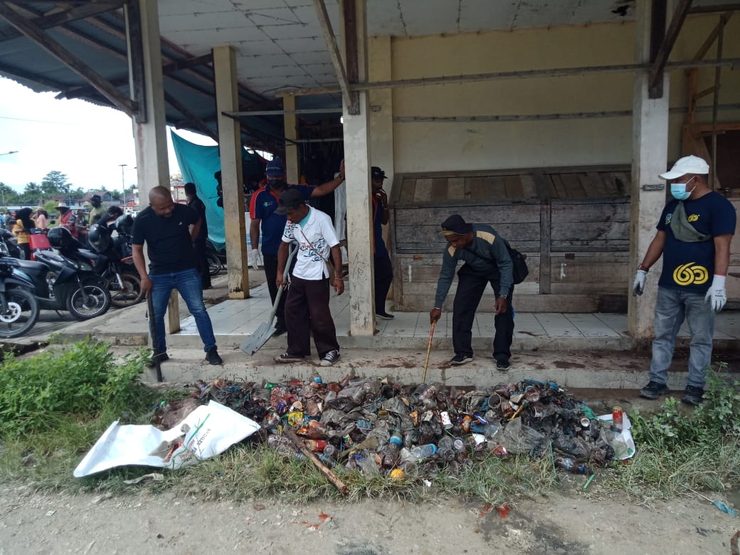 Usai apel, seluruh peserta kerja bakti yang terdiri dari staf Dinas Kesehatan, pegawai lintas OPD, petugas pasar, dan beberapa komunitas lokal mulai bergerak menyusuri area dalam dan luar pasar untuk melakukan pembersihan, pengumpulan sampah, serta penyemprotan disinfektan di area tertentu.