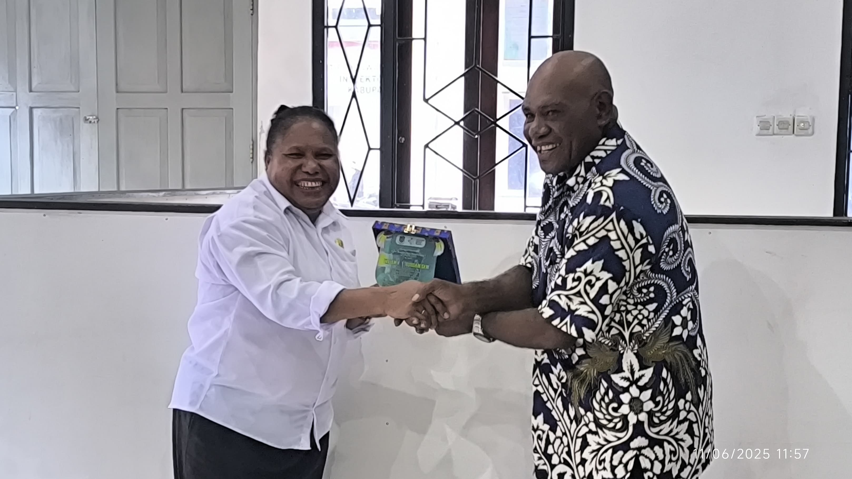 Sebagai bentuk penghormatan dan apresiasi, Dinas Kesehatan Kabupaten Sarmi memberikan cinderamata khusus kepada Bapak Willem K.Y. Burdam, SKM. Cinderamata ini menjadi simbol perpisahan, tetapi juga pengingat akan jasa-jasa dan kenangan manis selama masa kepemimpinan beliau.