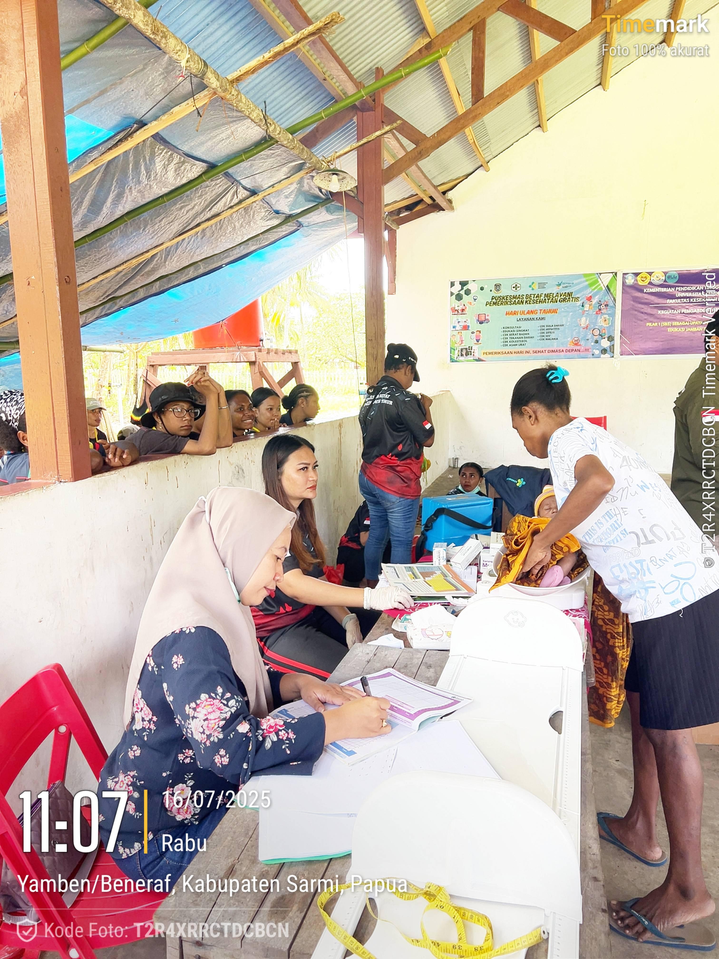 Pantai Timur, 16 Juli 2025 — Dalam rangka memperluas jangkauan pelayanan kesehatan ke wilayah terpencil, Puskesmas Betaf melaksanakan kegiatan Cek Kesehatan Gratis (CKG) yang dirangkaikan dengan layanan Puskesmas Keliling (Pusling) dan Posyandu rutin bulanan di Kampung Beneraf I, Distrik Pantai Timur, Kabupaten Sarmi, Rabu (16/7).