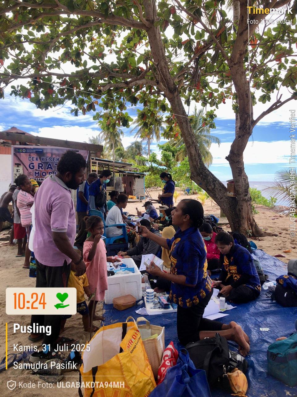 Tim kesehatan dari Puskesmas Sarmi hadir langsung di kedua pulau tersebut guna memberikan pelayanan kesehatan dasar kepada warga yang selama ini memiliki keterbatasan akses terhadap fasilitas kesehatan.